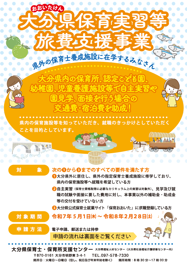 そして、これから大分県で就職活動を行う学生さんにおすすめの『保育実習等旅費支援事業』についても紹介をさせていただきました。